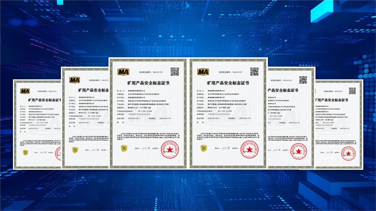 5月,湖南湘聯(lián)電纜有限公司成功取得安標(biāo)國(guó)家礦用產(chǎn)品安全標(biāo)志中心頒發(fā)MVV-0.6/1(1.5~300)mm2煤礦用聚氯乙烯絕緣聚氯乙烯護(hù)套電力電纜、MYJV-8.7/10(25~300)mm2煤礦用交聯(lián)聚乙烯絕緣聚氯乙烯護(hù)套電力電纜等六個(gè)產(chǎn)品的礦用產(chǎn)品安全標(biāo)志證書(shū)。