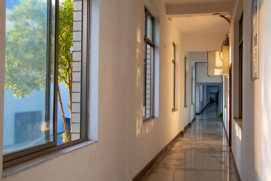 “辦公走廊和走廊的窗外”
