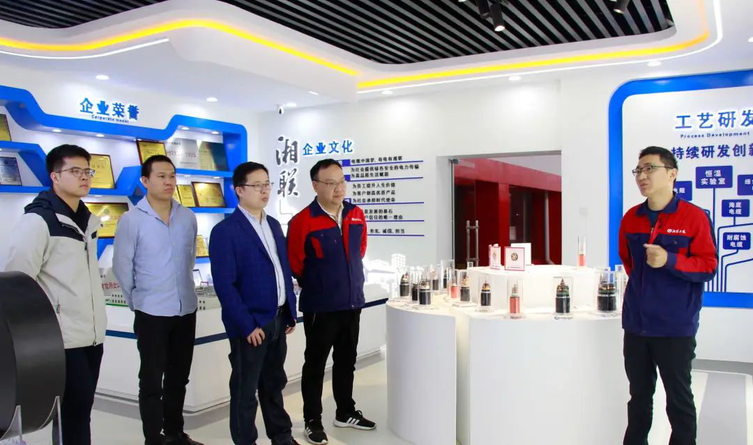 隨后,雷前老師一行先后參觀了企業(yè)展廳、電力電纜車間、研發(fā)檢測中心、倉庫物流中心,詳細了解了湘聯(lián)電纜的發(fā)展歷程、發(fā)展戰(zhàn)略、企業(yè)文化、產(chǎn)品類型等方面,實地考察了湘聯(lián)電纜的電纜電線的原材料、生產(chǎn)工藝、技術研發(fā)等情況。