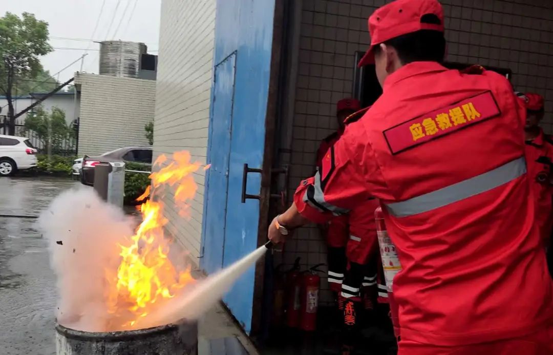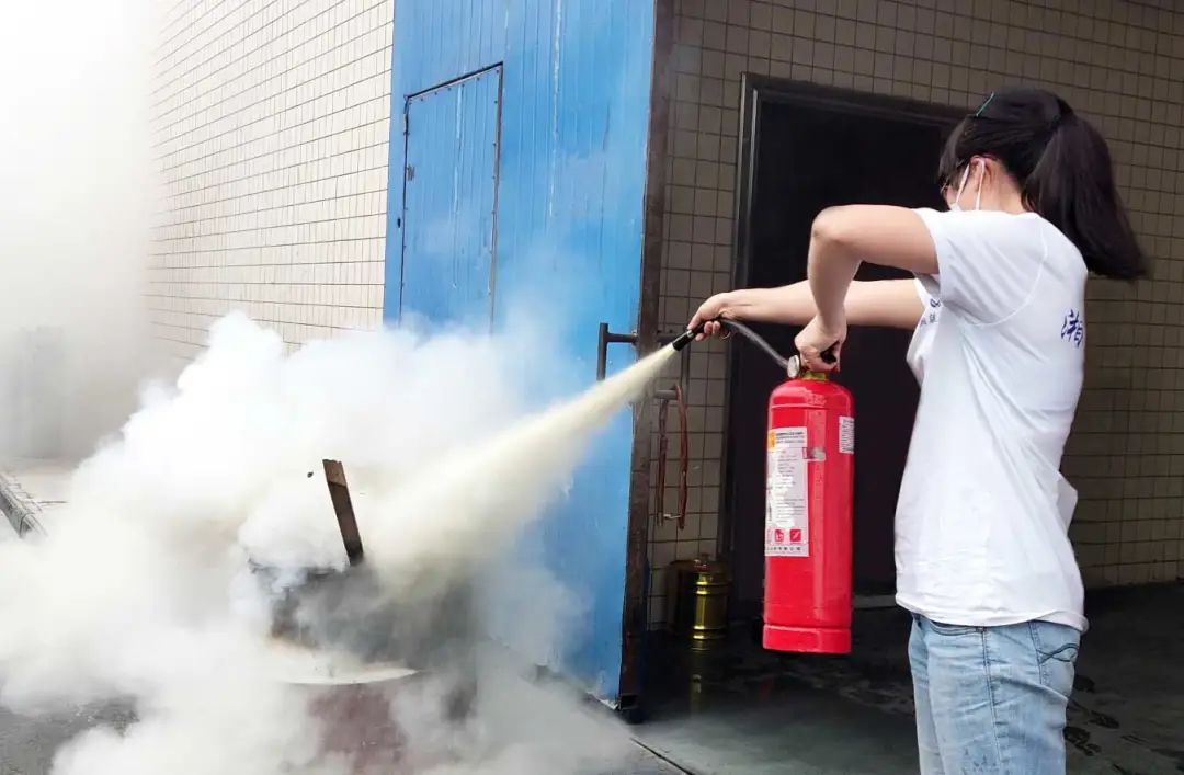 ▲員工正在進(jìn)行滅火器實(shí)操演練