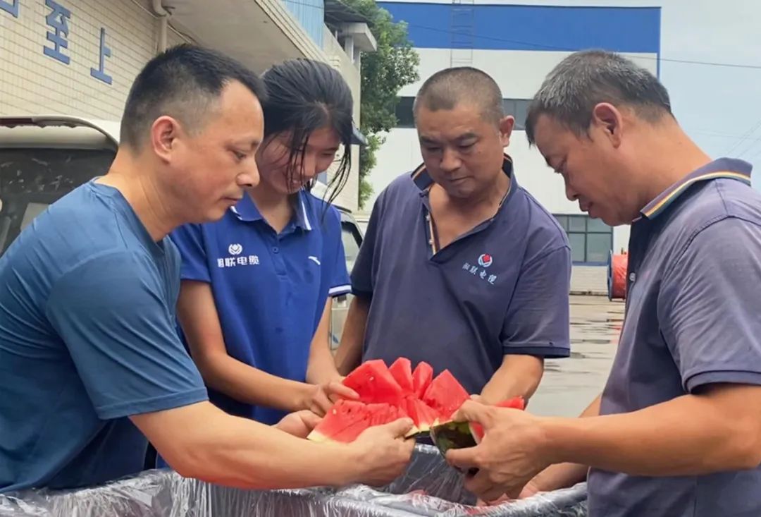 面對高溫天氣,湘聯(lián)電纜領(lǐng)導(dǎo)高度重視員工生命安全,并采取多項(xiàng)措施幫助員工應(yīng)對高溫生產(chǎn)工作,如配備防暑降溫的藿香正氣水、涼茶等物品,同時(shí)堅(jiān)持開展夏日送西瓜的員工福利活動(dòng),預(yù)防高溫中暑。