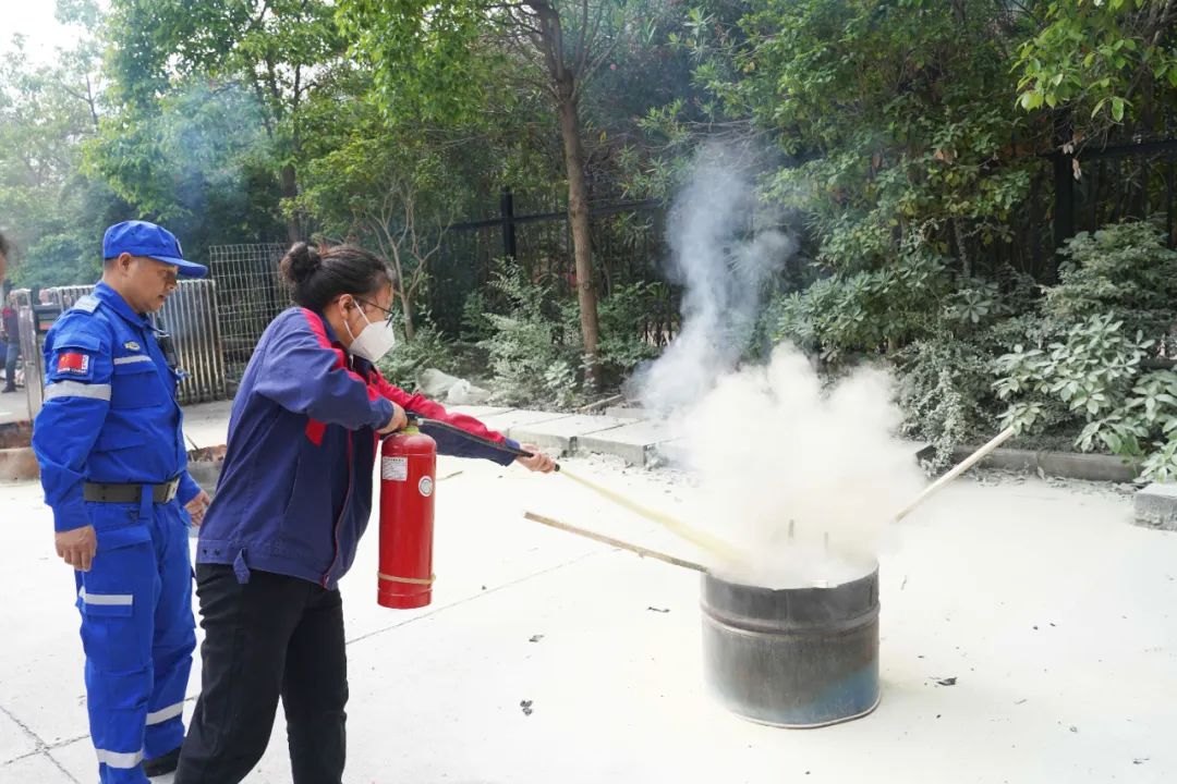 本次演練以實(shí)操為主,為確保所有員工具備基本消防能力,每一位員工都在專業(yè)消防隊(duì)員的指導(dǎo)下,完成了使用滅火器撲滅火堆、消防水槍對接等實(shí)際操作,切實(shí)增強(qiáng)員工的自防自救能力。