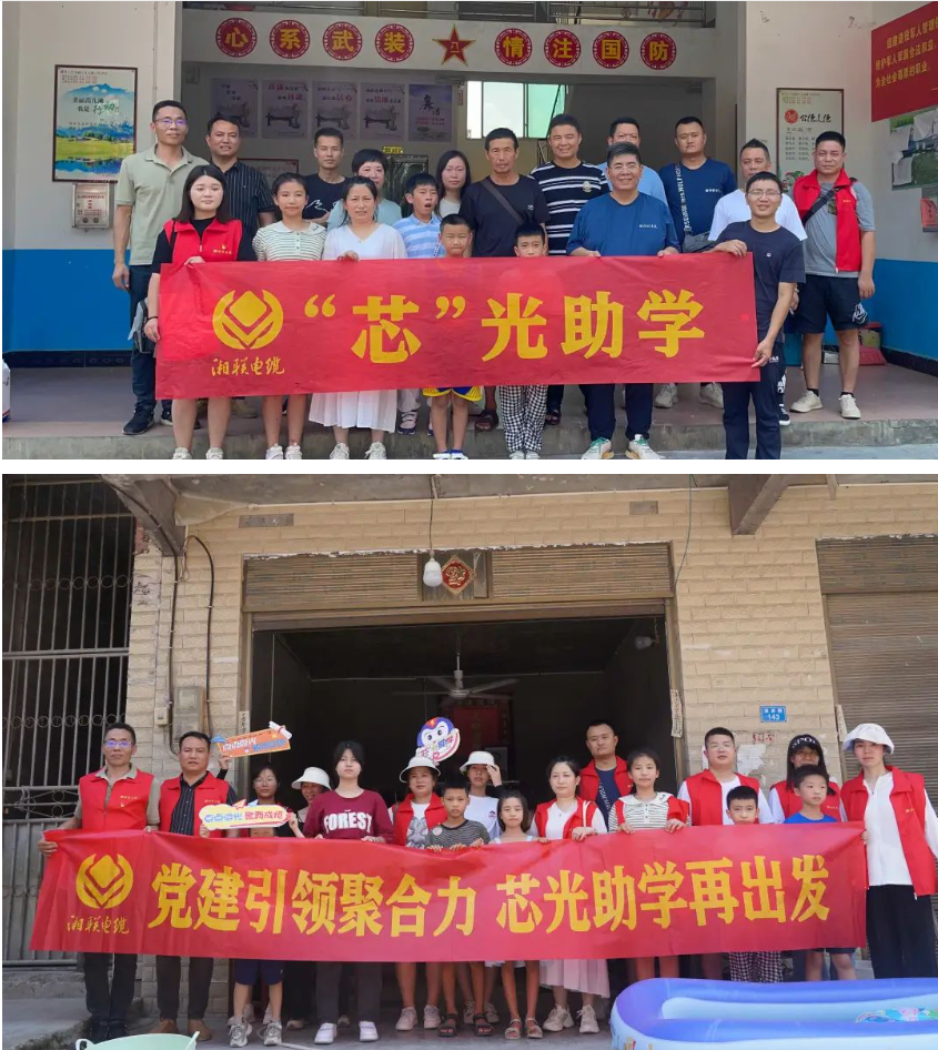 鄉(xiāng)村振興,教育先行。為深入貫徹習(xí)近平新時(shí)代中國(guó)特色社會(huì)主義思想主題教育,助力鄉(xiāng)村振興,在開學(xué)來臨之際,湘聯(lián)電纜攜手經(jīng)銷商客戶于8月17日走進(jìn)湘西土家族苗族自治州龍山縣苗兒灘鎮(zhèn)開展2023年度“芯”光助學(xué)活動(dòng),傳遞關(guān)愛青少年兒童成長(zhǎng)正能量。