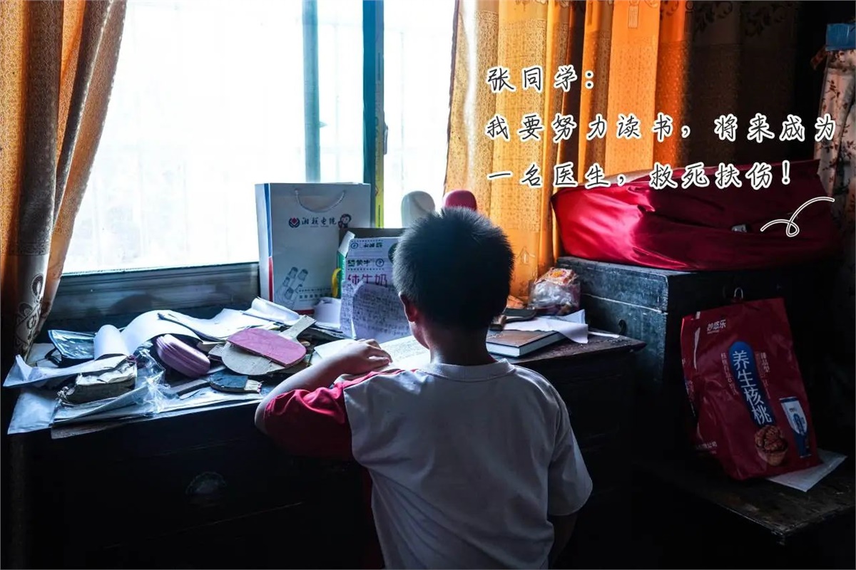 張同學(xué):10歲,母親去世,父親患腎病綜合癥,無法勞動(dòng),需定期前往長(zhǎng)沙醫(yī)院就診復(fù)查,家中還有年邁的奶奶,需要照顧贍養(yǎng)。盡管家庭經(jīng)濟(jì)條件遇到困難,但其父依然十分重視教育,希望孩子能夠通過讀書改變命運(yùn)。