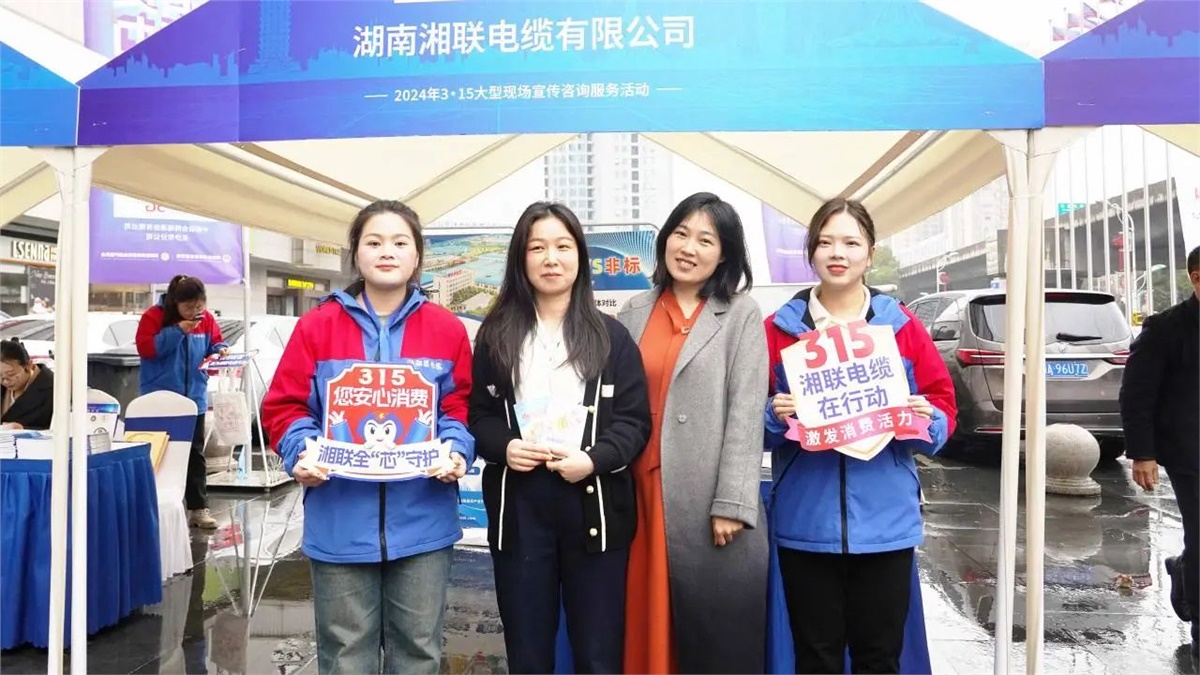 為了進一步提升廣大消費者的權(quán)益保護意識,深入開展“激發(fā)消費活力”消費維權(quán)年主題活動,大力宣傳《消費者權(quán)益保護法》《湖南省消費者權(quán)益保護條例》,在湖南省消費者權(quán)益保護委員會指導下,長沙市芙蓉區(qū)市場監(jiān)督管理局、芙蓉區(qū)消費者委員會聯(lián)合湖南省電線電纜行業(yè)協(xié)會等相關單位于2024年3月15日上午在長沙市芙蓉區(qū)萬家麗廣場舉行3·15大型現(xiàn)場宣傳咨詢服務活動。鑒于多年來企業(yè)在消費者權(quán)益保護工作中的積極表現(xiàn),湖南湘聯(lián)電纜有限公司受邀參與此次活動。