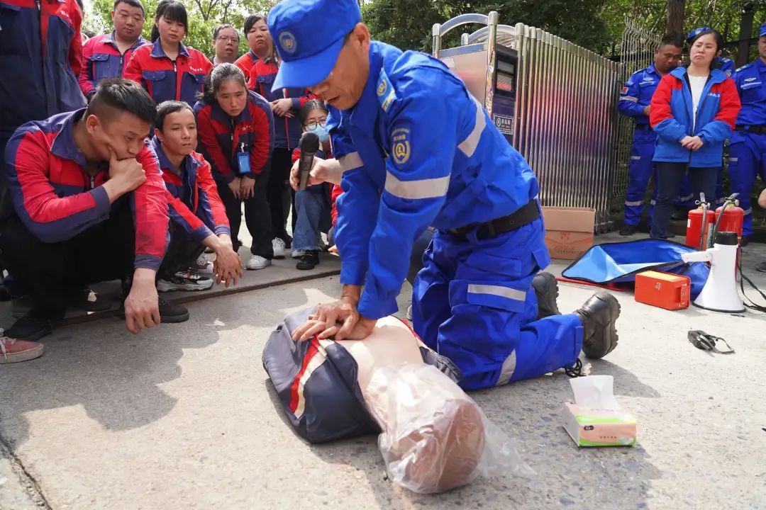 隨后,專業(yè)消防員以理論結(jié)合實際,現(xiàn)場講解了逃生注意事項、報火警通訊知識,并現(xiàn)場演示了滅火器、消防栓、水槍等消防器材的使用方法和心肺復蘇的操作方式,全面提升員工的消防技能。